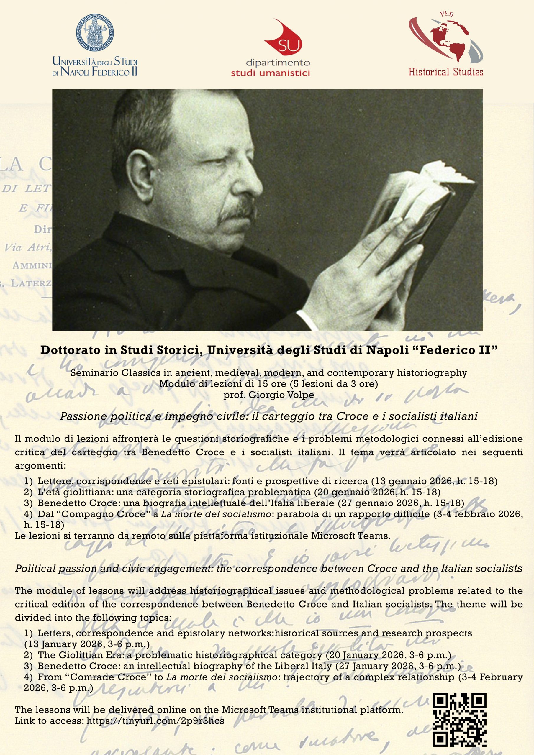 The module of lessons will address historiographical issues and methodological problems related to the critical edition of the correspondence between Benedetto Croce and Italian socialists. The theme will be divided into the following topics: